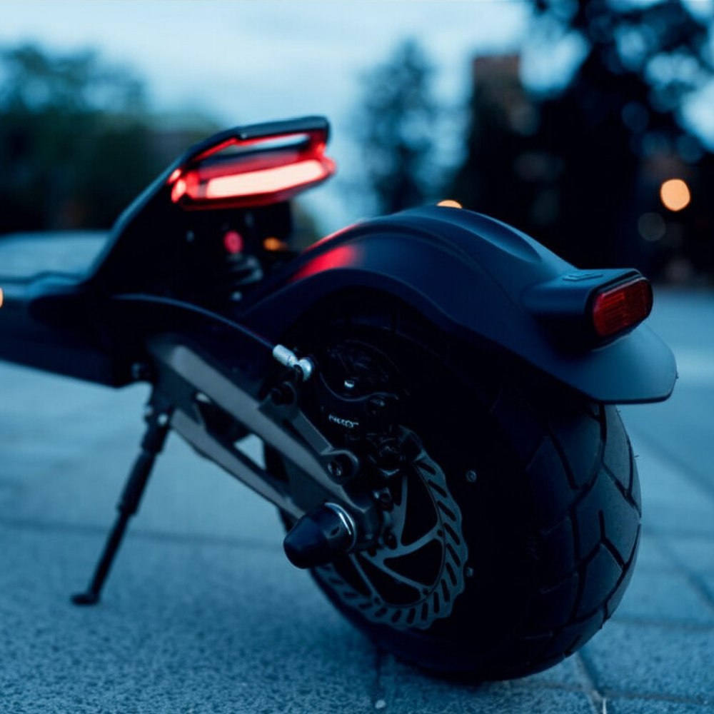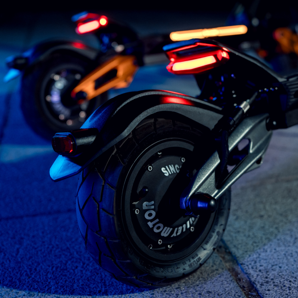 Innowacyjny system Split-rim tubeless dostępny tylko w hulajnogach marki Hiley – dzielona felga w połączeniu z bezdętkową oponą 10″ CST i złączkami na silnikach dla szybkiej wymiany opony. W kołach zamocowane są dwa mocne silniki 1000W dostarczające łączną moc szczytową 3000W zapewniają dynamiczne przyspieszenia oraz zwiększają stabilność jazdy. Hulajnoga została wyposażona w najwyższej klasy hydrauliczne hamulce tarczowe marki NUTT oraz dodatkowy hamulec elektryczny, hulajnoga zapewnia pewne i bezpieczne hamowanie w każdej sytuacji. Każde z kół zostało wyposażone w błotniki w pełni chroniące przed zachlapaniami.