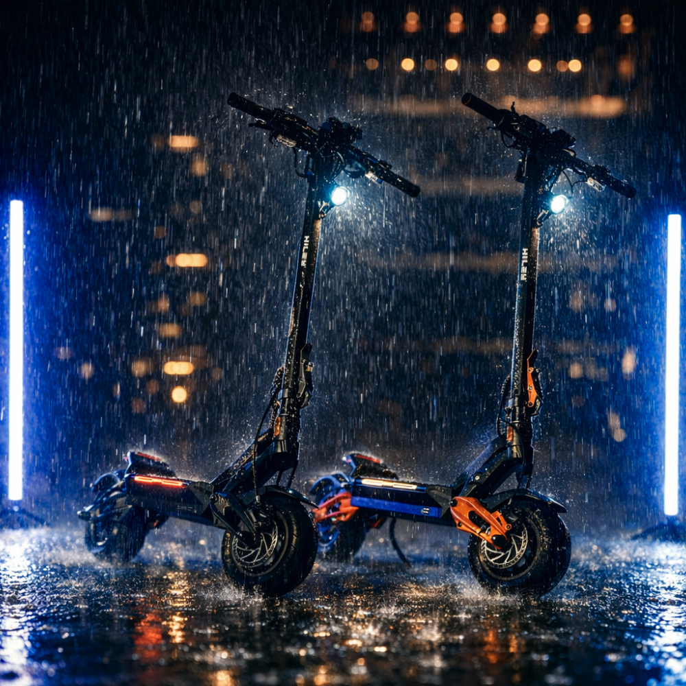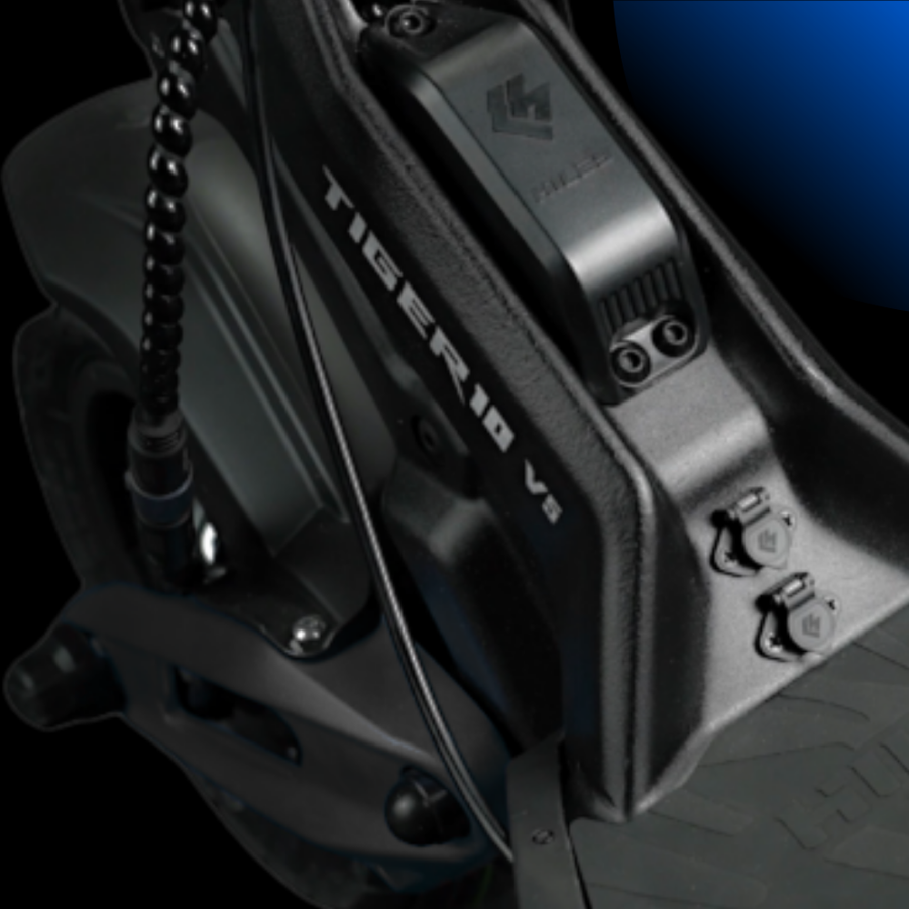 Kluczową innowacją w Hiley Tiger 10 V5 jest szczelna elektronika i złącza co nadaje hulajnodze klasę wodoodporności IPX7. Akumulator o pojemności 27 Ah został wykonany z markowych ogniw 21700 DMEGC Li-ion klasy A. Maksymalny zasięg 95 km przekłada się na jeszcze dłuższe wrażenia z jazdy. Amortyzatory z regulacją twardości i ReBound wspólnie z bezdętkowymi (tubeless) kołami 10 cali tworzą z Tigera 10 V5 hulajnogę z najlepszą amortyzacją na rynku. Dwa silniki 2x1000W (moc szczytowa 3000W) zapewniają dynamikę jazdy oraz posiadają system szybkiej wymiany opon. Moc dostarczają wysokiej jakości sterowniki sinusoidalne co zapewnia płynną i cichą pracę, jednocześnie unikająć poślizgu dzięki kontroli trakcji.