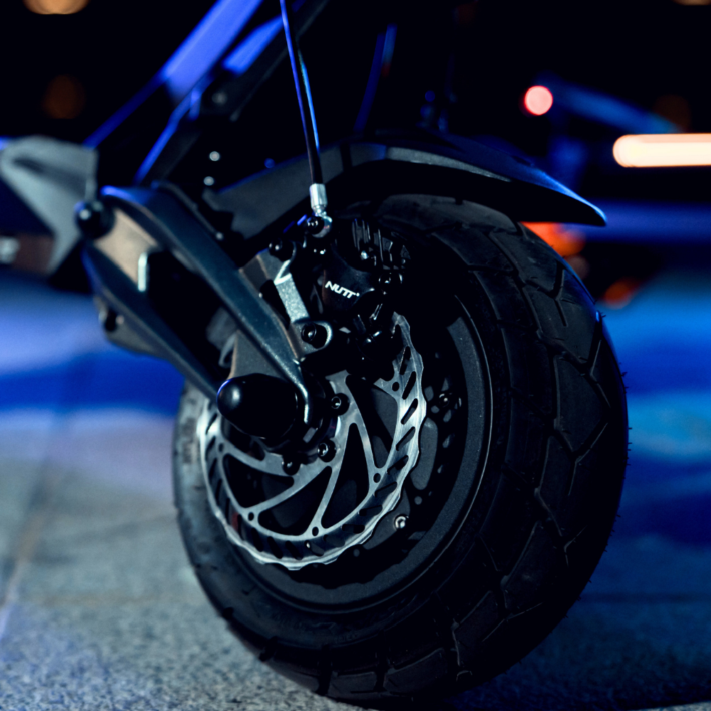 Hamulce hydrauliczne NUTT z przodu i z tyłu, wspomagane hamulcem elektrycznym, oraz tarcze 140mm gwarantują pewne i precyzyjne zatrzymanie w każdej sytuacji. Dzięki zastosowaniu klocków NUTT z radiatorem skutecznie rozpraszają ciepło, zapewniając trwałość oraz maksymalną efektywność całego układu.