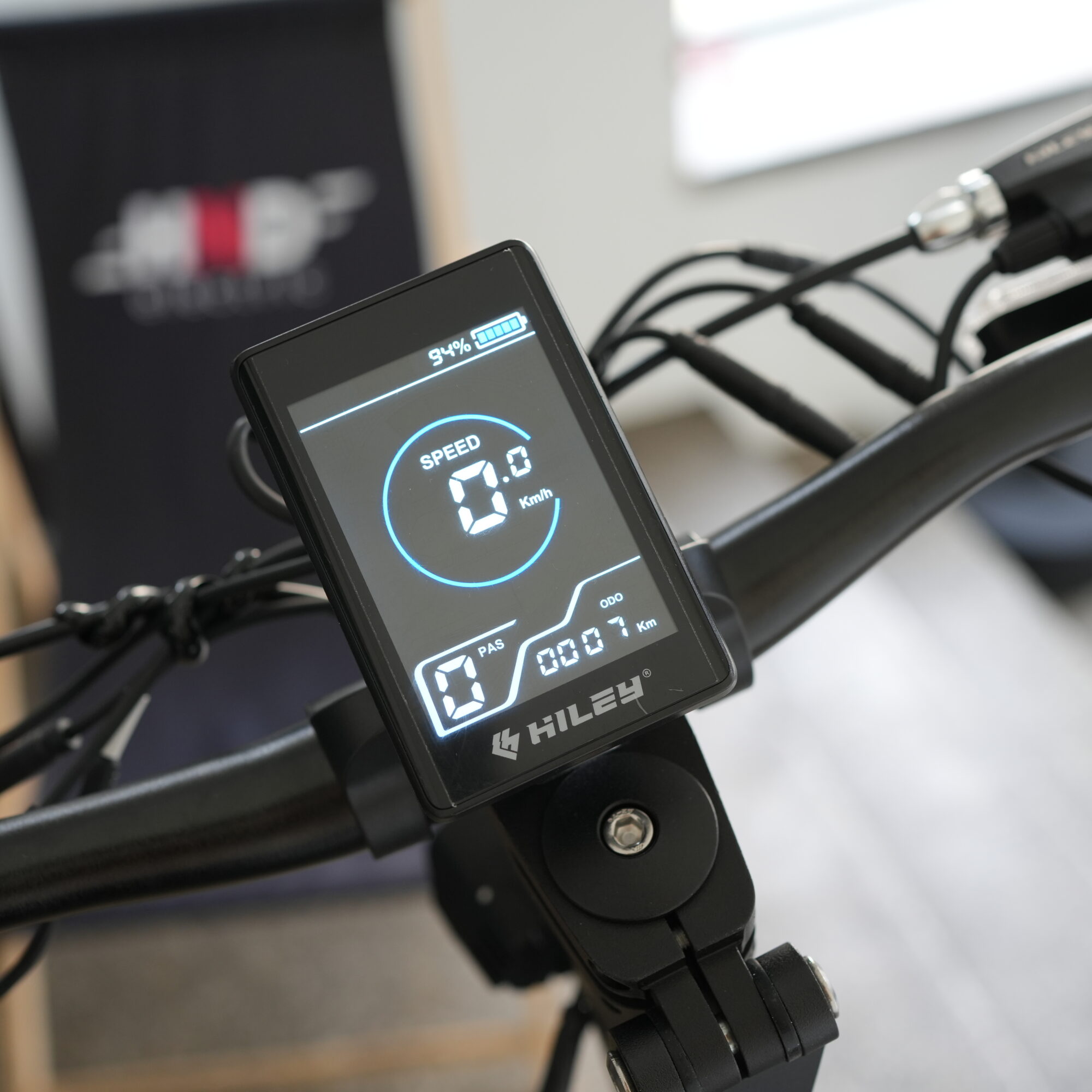 W Hiley Tiger EVO producent idąc za trendem w branży zastosował czytelny kolorowy centralny wyświetlacz z nowoczesnym designem. Czytnik NFC tym razem wbudowano w wyświetlacz, aby uruchomić hulajnogę w nowej wersji kartę NFC przykładamy bezpośrednio do wyświetlacza. Interfejs wyświetlacza oferuje szereg przydatnych funkcji między innymi: tempomat, ustawienie mocy, lekki i mocny start, start od zera i wiele innych.
